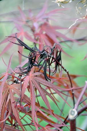 enlarge this imageWe hate to see it happen. We can't repair leaves killed by cold but with some paper hats,boxes and old sheets we can fend off the cold.