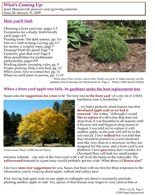 What's Coming Up 26: Tree choices, roots, cuts, swings, evergeens for shade and birds