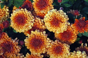 enlarge this imageMums have been cultivated, selected and crossed for so many centuries that varieties exist in all colors except blue and in every form from single daisy to enormous quill-petalled orbs and wispy spiders. Their ability to survive cold is also variable so be sure to check a variety's catalog listing if you wish to grow it as a perennial. The flowers above, although relatively ordinary in form, are unusual in having enough cold hardiness to survive a USDA zone 5 winter.