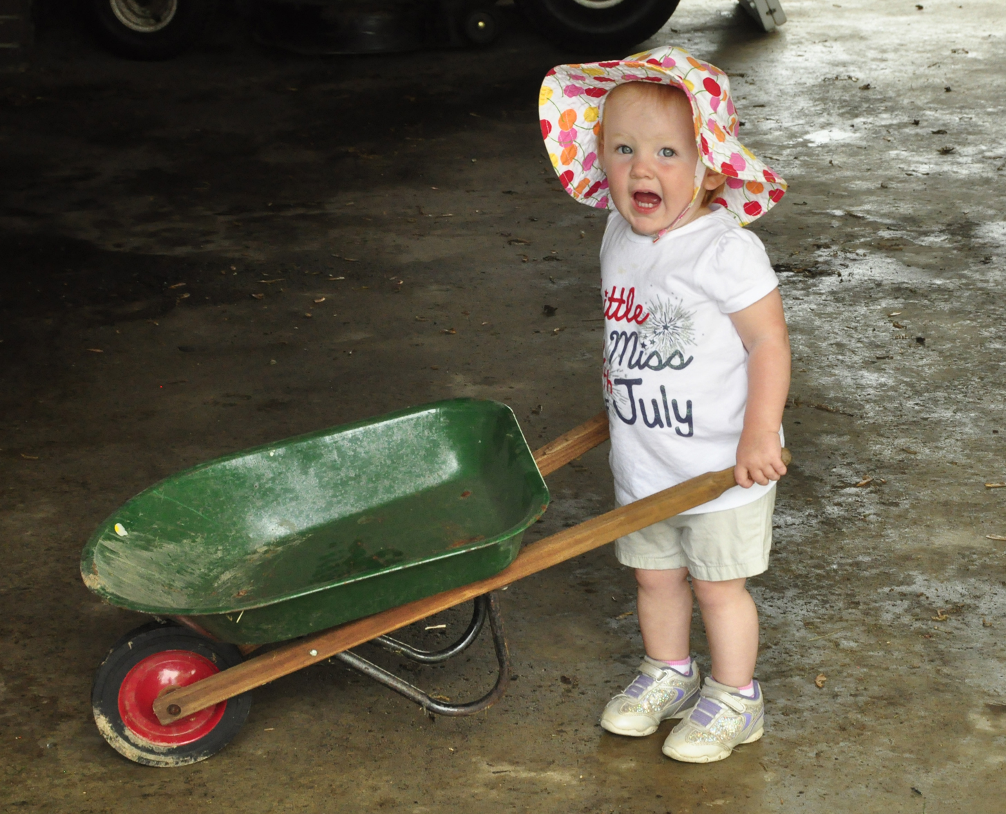 Below, left: That's Elizabeth with the wheelbarrow Darl