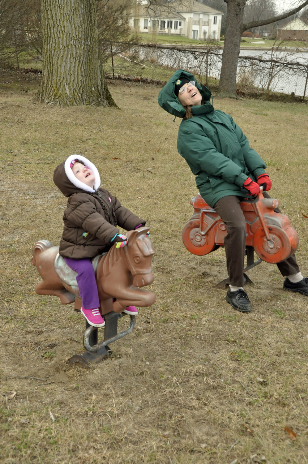 Below: Janet snow-painting with MacKenzie Moore, Owen Eichholz