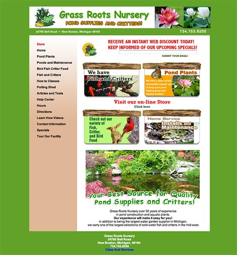Grass Roots also specializes in aquaric plants and fish stock.