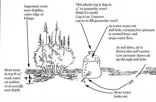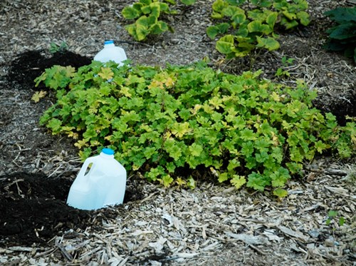 efficiently, use of leaky milk jugs for timed release watering in