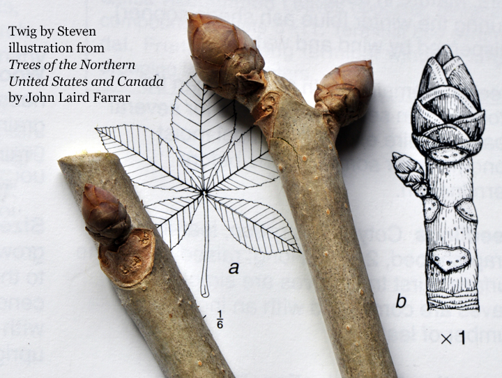 sticky, tip buds and tree of heaven (twig and bud shown below) for