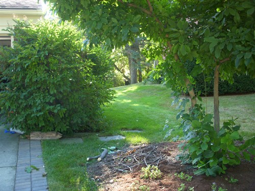 mulberry tree! Arrows point to magnolia shoots on the right,