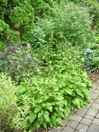 staking, and a big betony - Chocolate Joe Pye - obedient plant