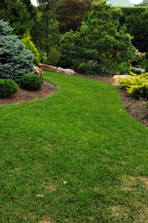 Below: That same slope at Chicago Botanic's Dwarf Conifer Garden, four