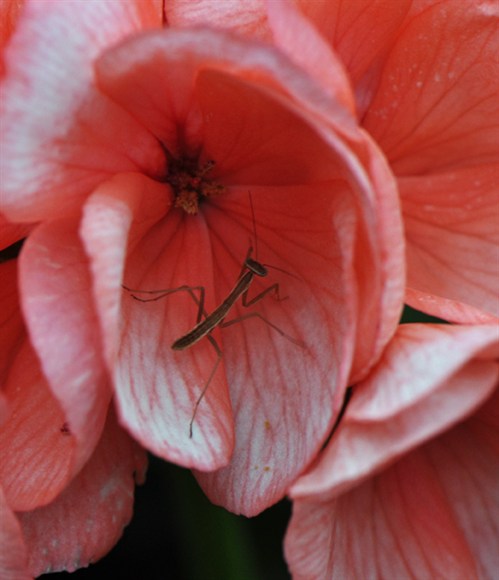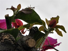 Hiking 'cross QWERTYUIOP -- a miniature mantis.