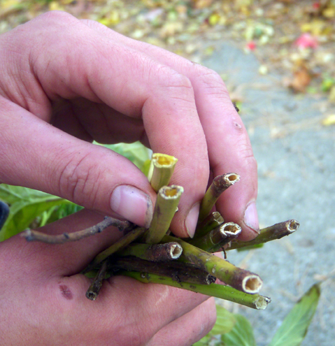 see that leave solid, white stem bases... not discolored, hollow