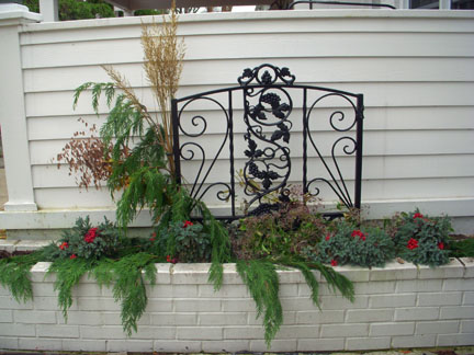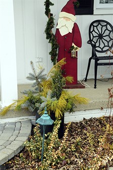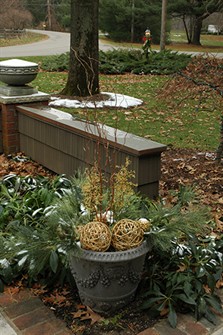 We tucked Alaska false cypress boughs (Chamaecyparis