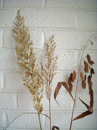 (Chasmanthium latifolium) and a branch of the falsecypress