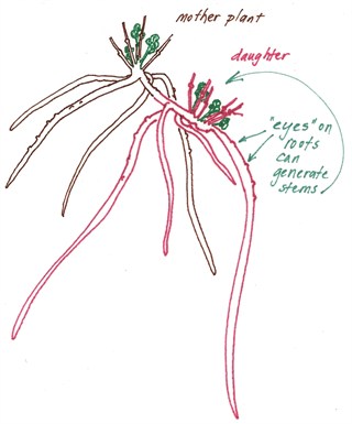 have tap roots. To divide a tap root, slice vertically through the