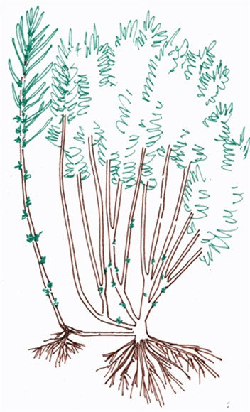 from a near-woody crown.