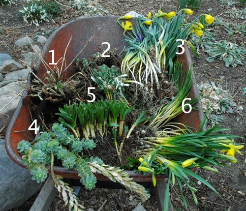 Here's a barrow full of plants we dug to divide and transplant