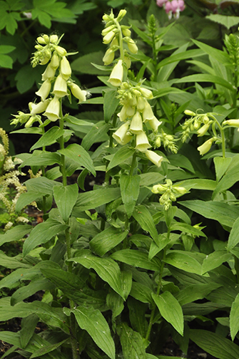 Digitalis purpurea, a biennial which may bloom pink, white or