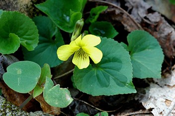downy violet, Viola pubescens. Its purple-flowered cousin,