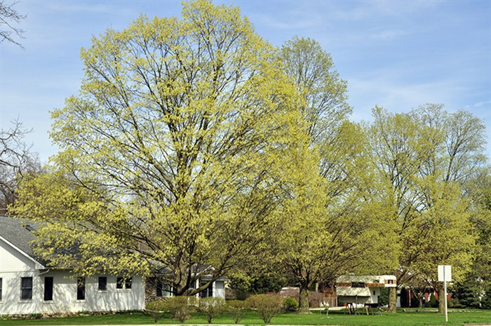 maples, (round) Norway maples and (spreading) silver maples.