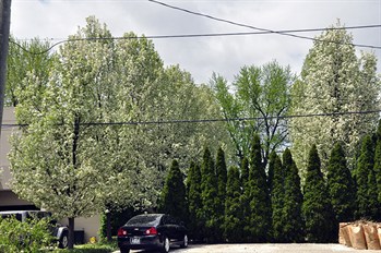 spirea, callery pear, cherry (pie-, weeping-, others), crabapple, flowering