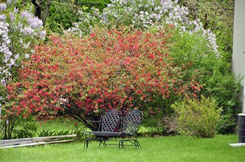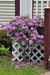 (common- and dwarf lilac), redbud, Rhododendron, Wisteria |