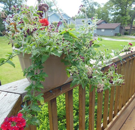 we did to this Verbena: We cut half the stems back, deadheaded the