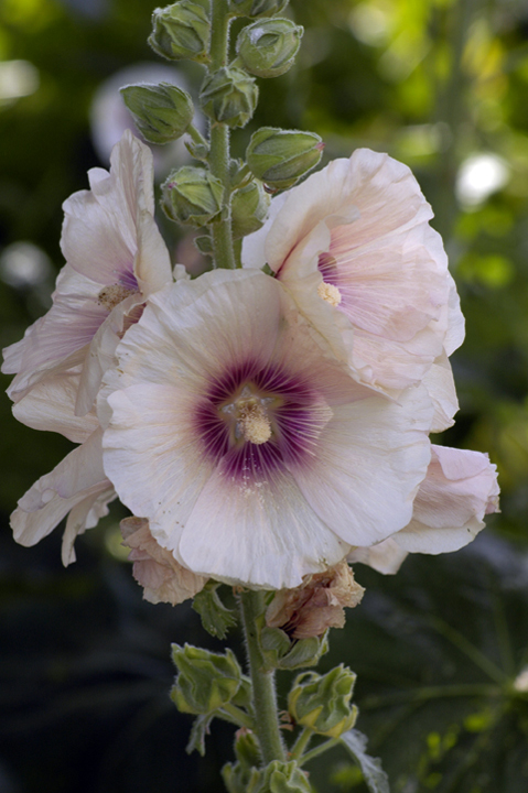 hollyhocks and the low, weedy malva called "cheeses" over other