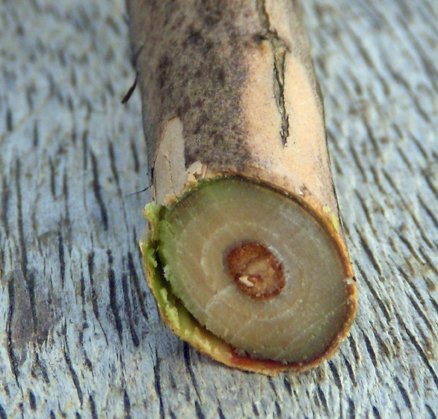 slippery -- moist -- green layer under the bark of this privet