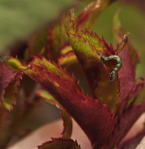 caterpillar. Tougher to see as the rose foliage greens up.