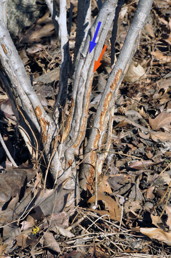 recurrence. These two spicebushes (below, Lindera benzoin,