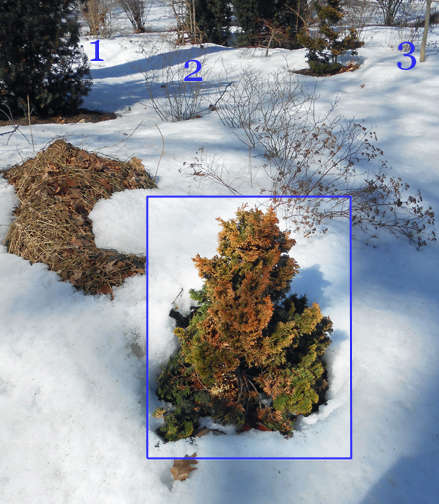 salt/de-icers were not involved in this far-backyard bed. Beyond