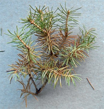 needles remain green for a long time. Then, when live portions of