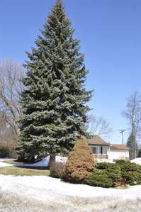blue spruce, dwarf Alberta spruce and dwarf Norway spruce
