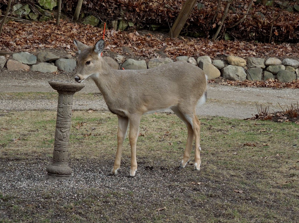 damaged by a stag's horn rubbings all the way up and down. The bark