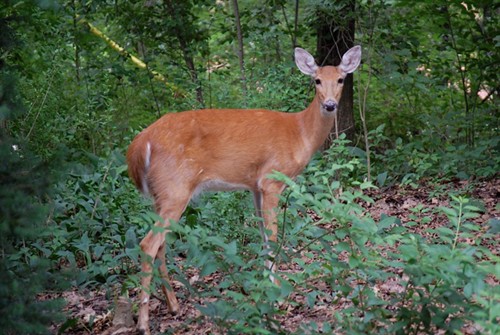 damaged by a stag's horn rubbings all the way up and down. The bark