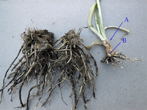 hosta was in trouble. Best move: Just get rid of it. (More on Hosta crown rot through University Extension