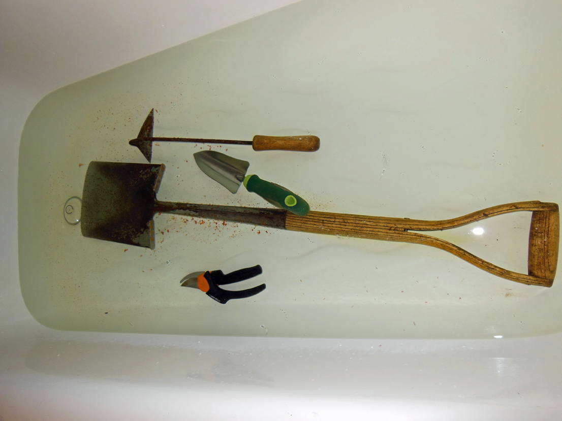 Right: All the tools and the tool bucket went into the tub