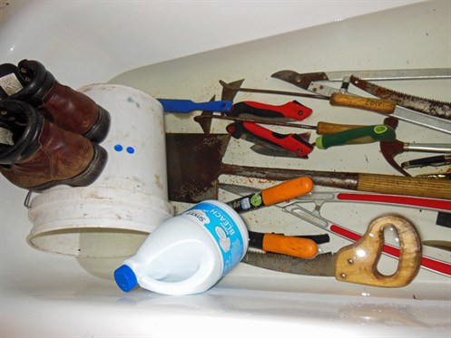 Right: All the tools and the tool bucket went into the tub