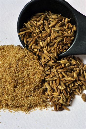 Below, left: Cumin seeds and powder: It's a building block