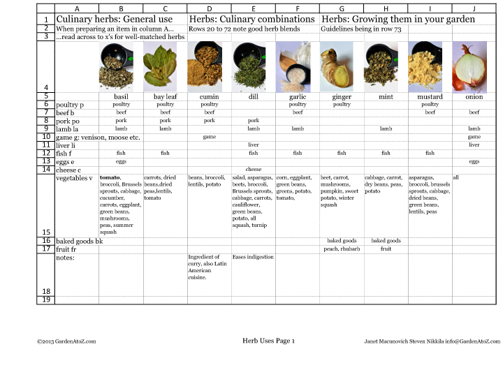 • How to grow each of the herbs on the chart.