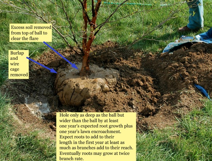 So don't plant into a new tree's root ball or into the space