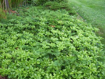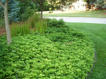 trees in the bed have grown, shade-loving pachysandra has asserted