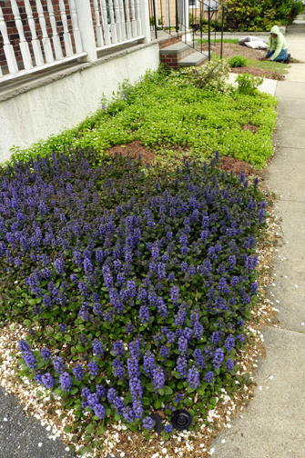 house feature mondo grass (Ophiopogon), ajuga and hosta,