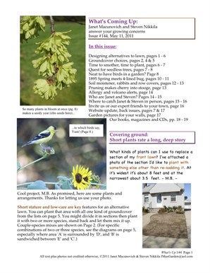 What's Coming Up 144 has designs, how-to's and plant lists for