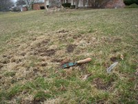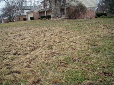 You may see summer's and fall's symptoms or there may be spots that are totally bare, where grubs fed