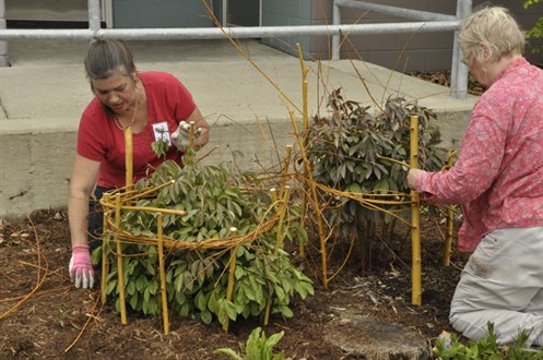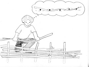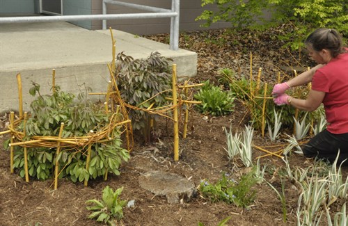 Weaving wattle fencing in the pattern we call Ziggy Zoo
