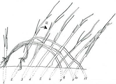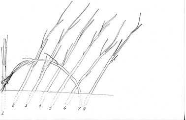Lengths of fresh flexible wood such as 2 year old canes removed