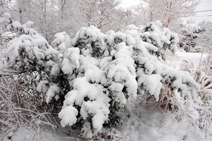 Brush up, not down on snowy shrubs. Growing Concerns 338*
