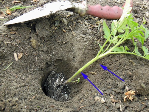 the bottom leaf or two, and set the plant deep and on an angle.