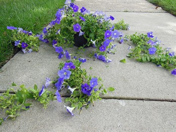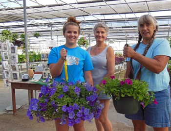 petunias, while Sharon holds another of the same age that's been