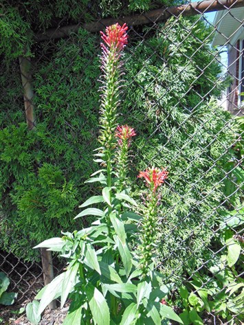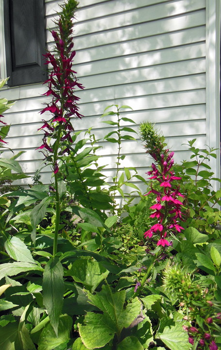 Below, left: This cardinal flower has been blooming for several