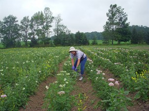 Below: That's not Maggie B. out in the potato rows, pulling mustard weeds. It's Pam Palechek, who was mentored by gardeners like Maggie B and mentors others in her turn now.